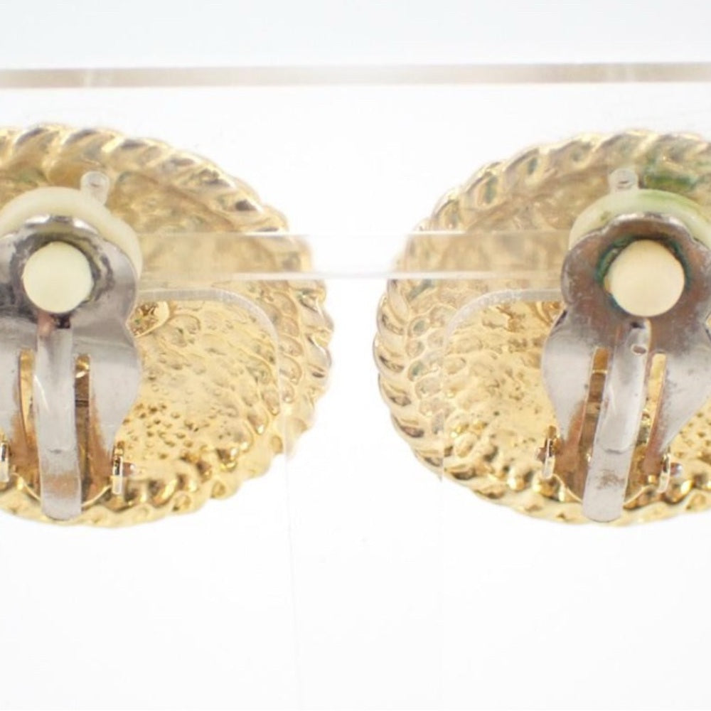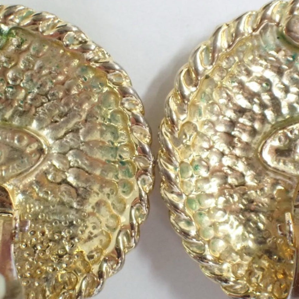 These exquisite CHANEL earrings showcase a luxurious blend of gold and black, featuring a striking interlocking CC logo adorned with sparkling crystals. The round design is accentuated by a textured gold-tone border, creating a sophisticated and eye-catching piece. Perfect for elevating any ensemble with a touch of timeless elegance.