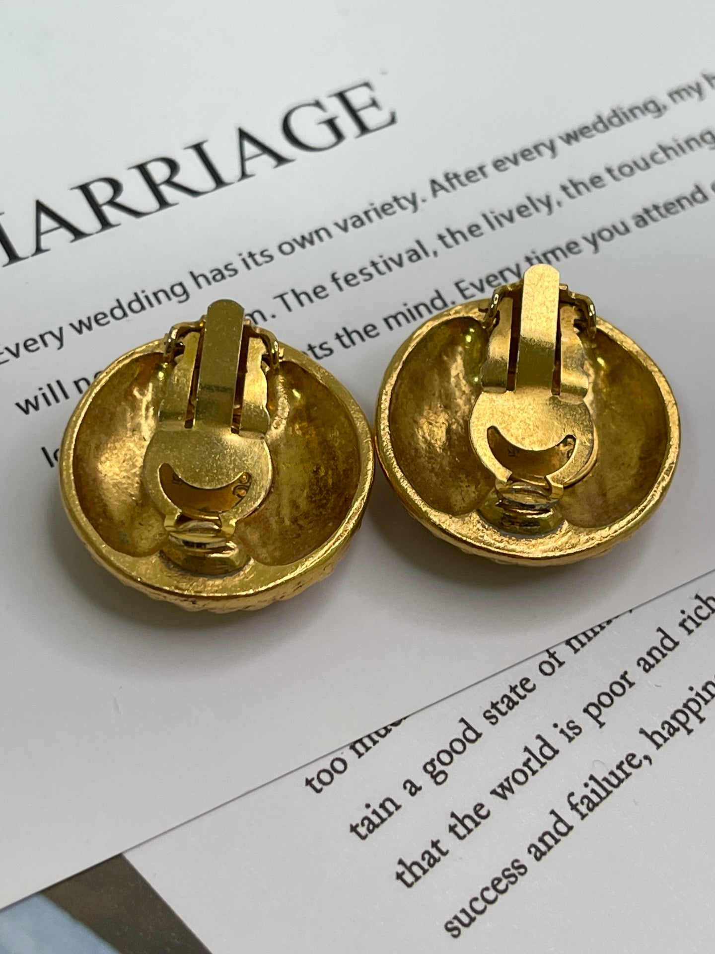 Estos pendientes redondos con marca Coco de Chanel cuentan con una hebilla tipo clip y están elaborados en metal en color dorado.